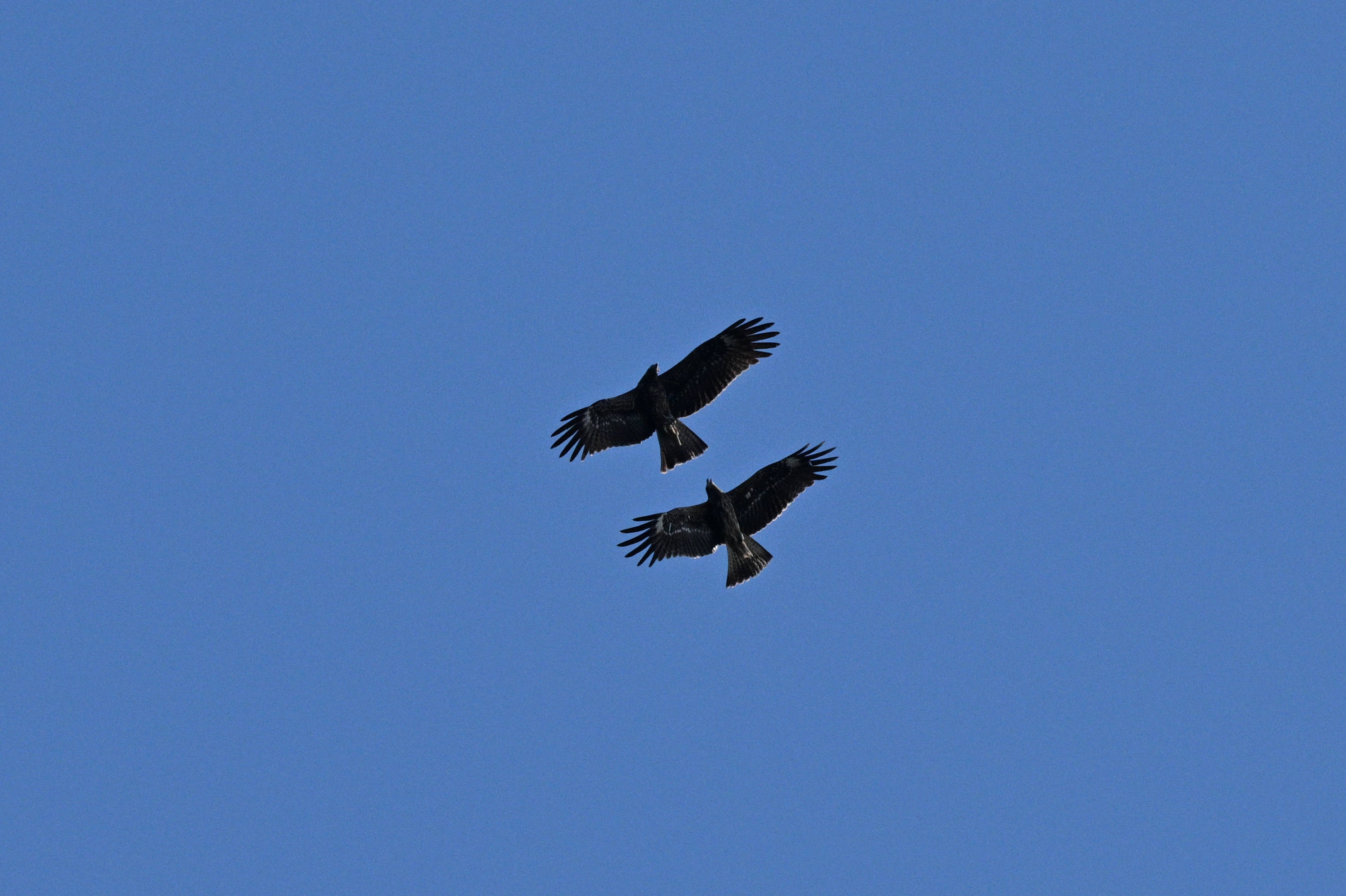 10月2日,两只黑鸢在海南昌江海尾国家湿地公园上空追逐。