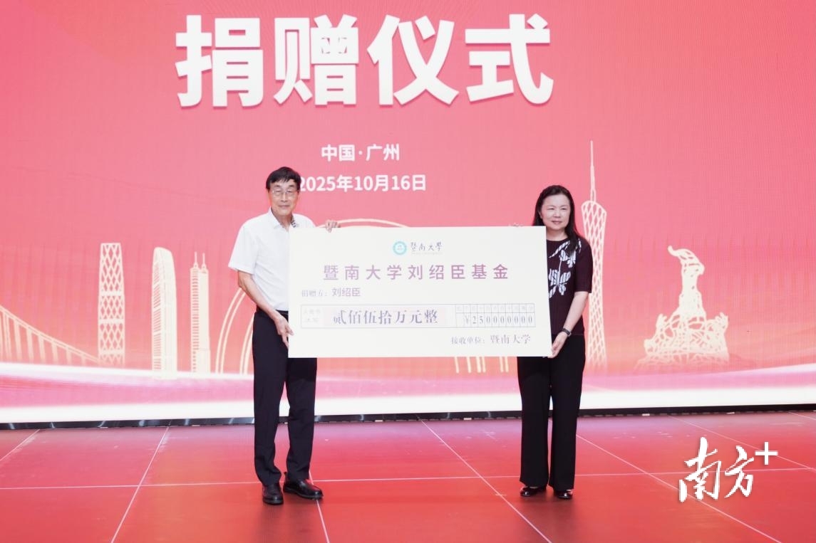 10月16日,暨南大学刘绍臣基金捐赠仪式在该校番禺校区举行,世界科学院院士、暨南大学教授刘绍臣捐赠250万元人民币,支持学校环境与气候学院及广东省南岭森林大气环境与碳中和野外科学观测研究站的建设与发展。