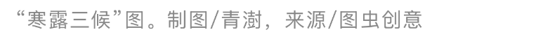 寒露,一年中第四个以气候现象命名的节气,也是第二个以“结露”命名的节气。正如春季有两个以“雨”命名的节气一样,秋季也有两个以“露”命名的节气——白露、寒露。虽然都得名于结露现象,但其背后反映的气候态势与驱动力不尽相同。白露时节,北半球日照减弱,但气候总体上仍受暖湿气团控制,其结露形成的原因是昼夜温差加大。寒露时,来自西伯利亚等地的干冷空气团开始频繁南下,实力强劲,成为天气舞台的“主角”,带来的不再是夜间的短暂降温,而是彻底压低整个地区的气温基础,使得夜间气温更低,露水寒彻入骨,故得名“寒露”。白露的“露”,只是气温下降的小小预警;寒露的“露”,则正是北方冷空气开始占据主导的宣告。寒露是一年中第一个以“寒”命名的节气,正缘于此。